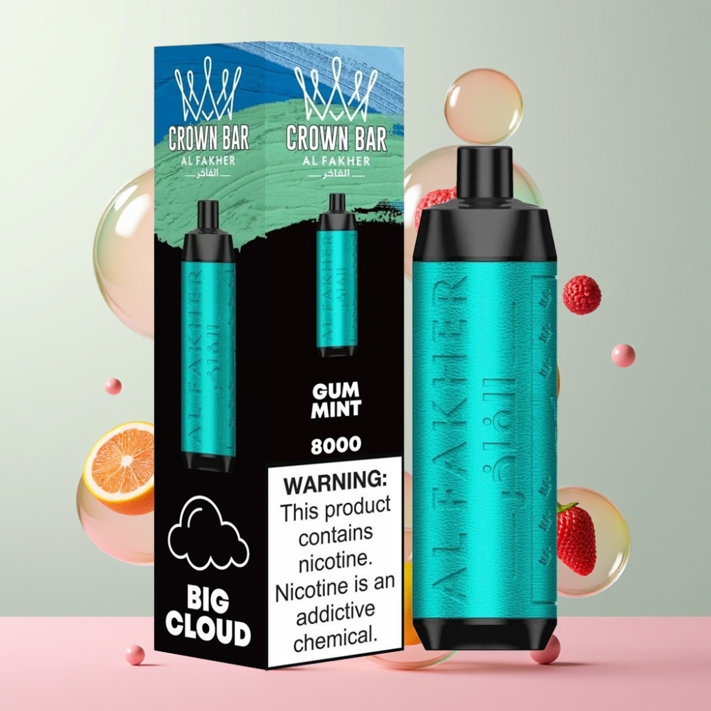 Al Fakher Crown Bar 8000 Crystal Eldobható Vape Gum Mint – 8000 Puff, 18ml e-Liquid, 5mg Nikotin, 600mAh Akku – Magyarország Nagykereskedés