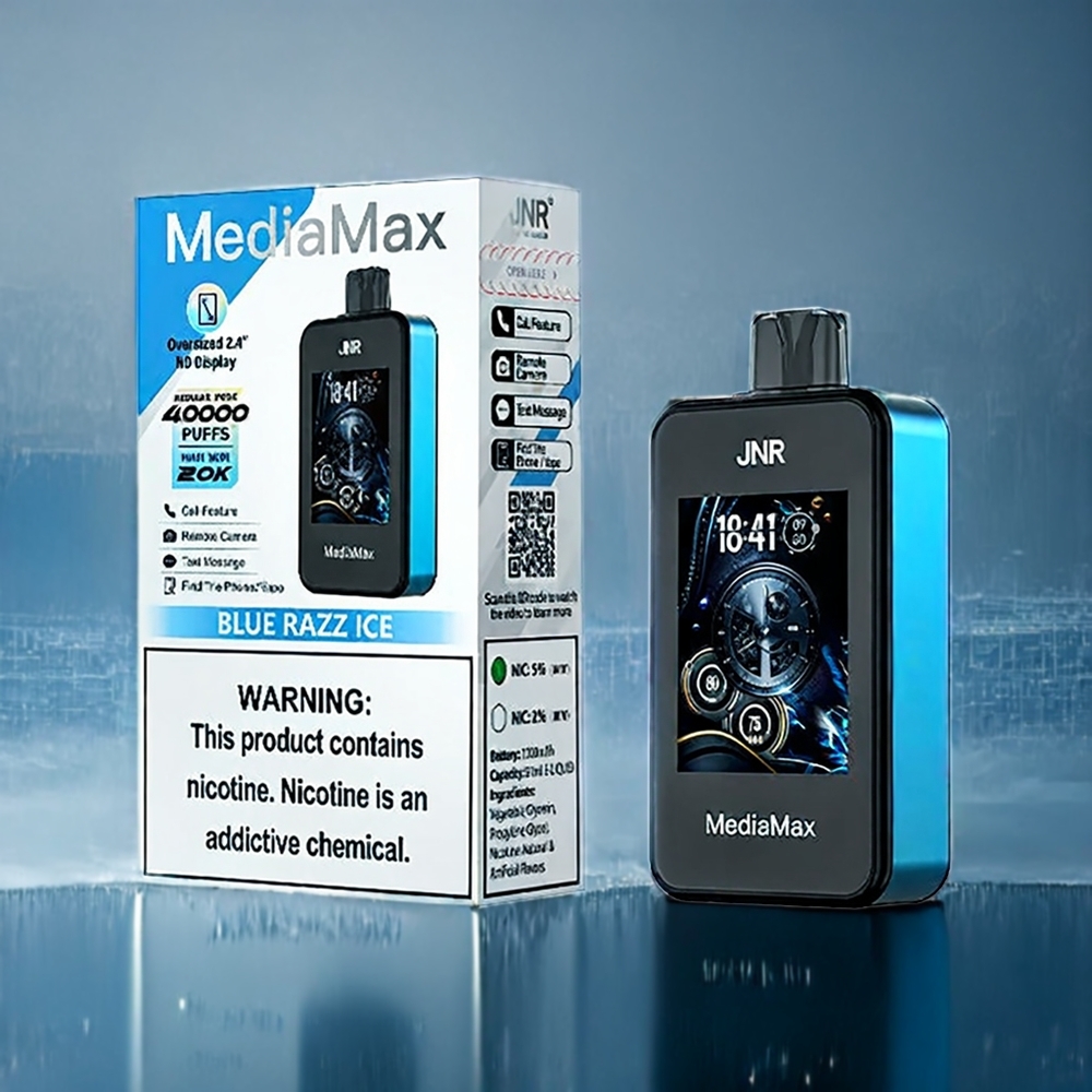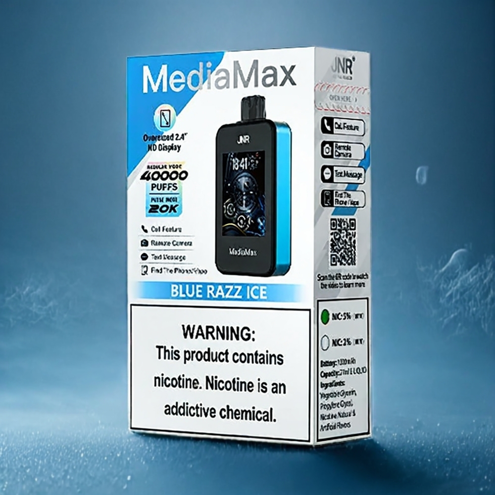 JNR MediaMax 40000 Puffs Magyarország nagykereskedés 1000mAh 21mL 5% Dual Mesh tekercs Type-C 2.4″ HD Display Blue Razz Ice