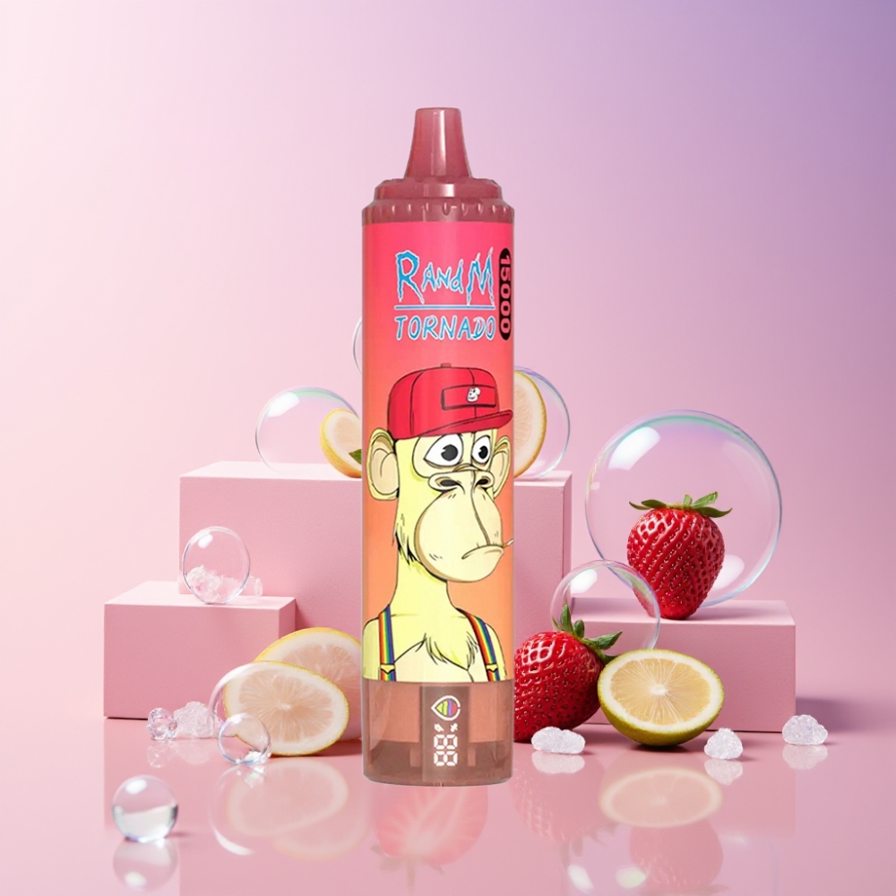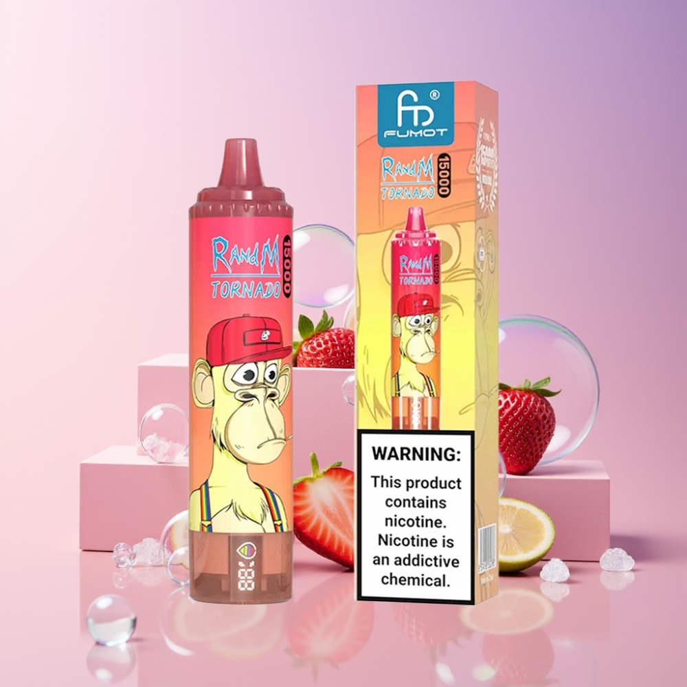 RandM Fumot Tornado 15000 Puffs Magyarorszag nagykereskedés Eldobható vape 25ml Liquid 850mAh Type-C LCD Strawberry Red Bull